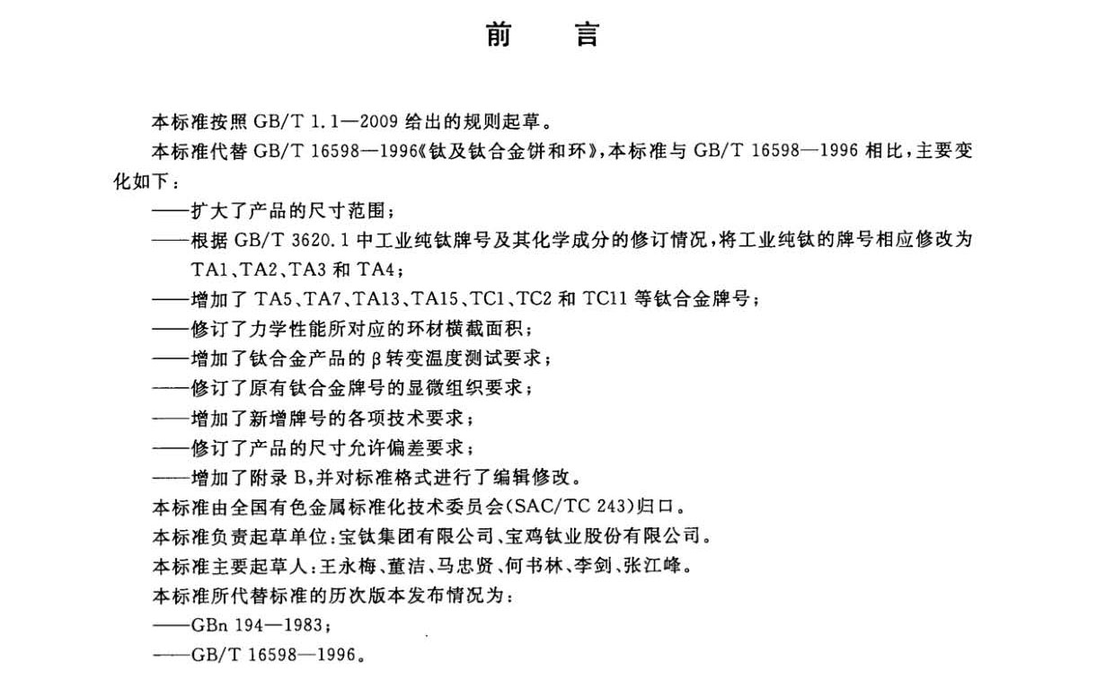 鈦及鈦合金餅和環(huán)國家標(biāo)準(zhǔn)GB/T 16598-2013