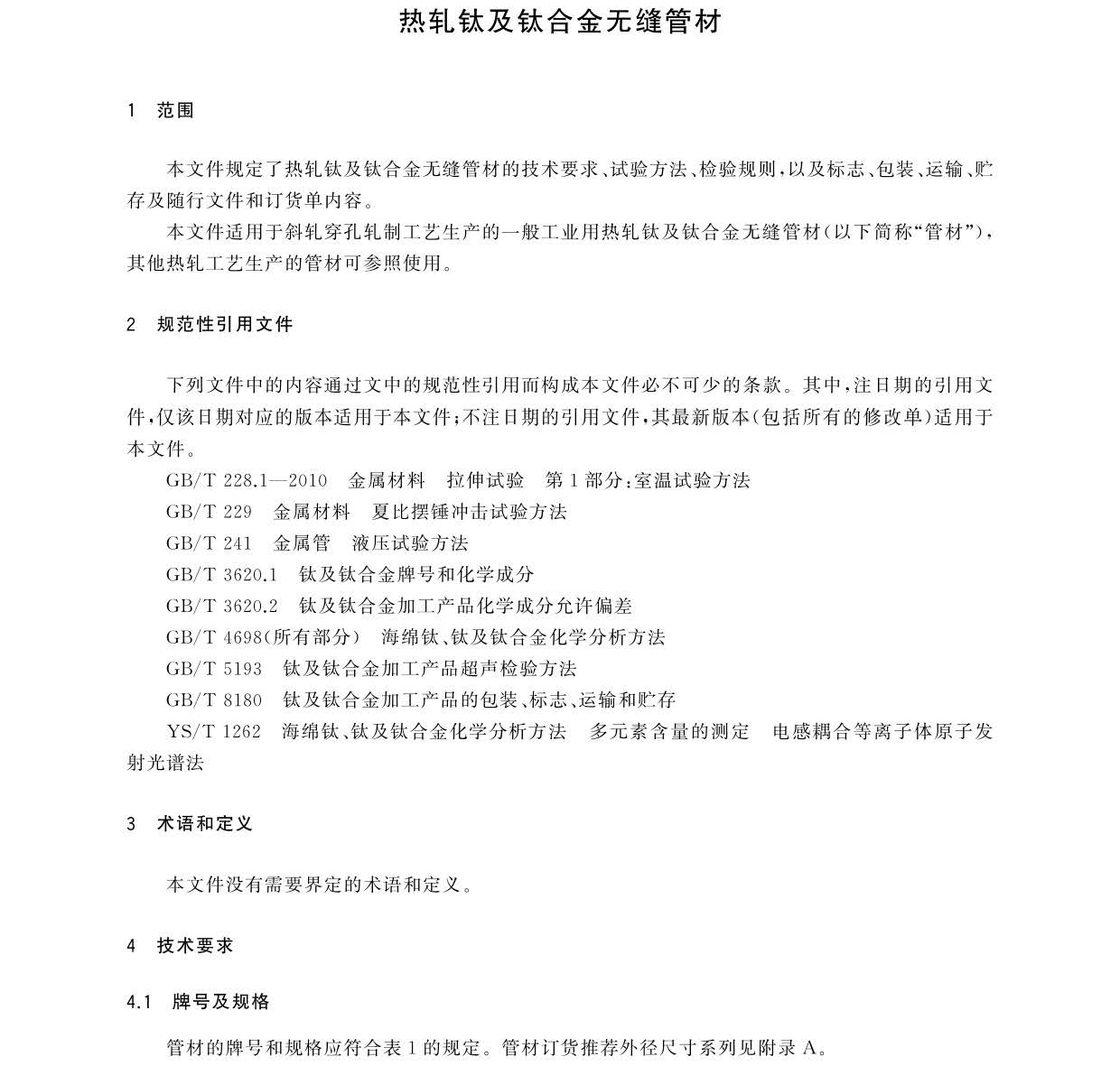 《熱軋鈦及鈦合金無縫管材國家標(biāo)準(zhǔn)GB/T 39856-2021》,該標(biāo)準(zhǔn)適用于斜軋穿孔軋制工藝生產(chǎn)的一般工業(yè)用熱軋鈦及鈦合金無縫管材,其他熱軋工藝生產(chǎn)的管材可參照使用。該標(biāo)準(zhǔn)的詳細規(guī)范內(nèi)容,寶雞巨偉鈦業(yè),整理如下: