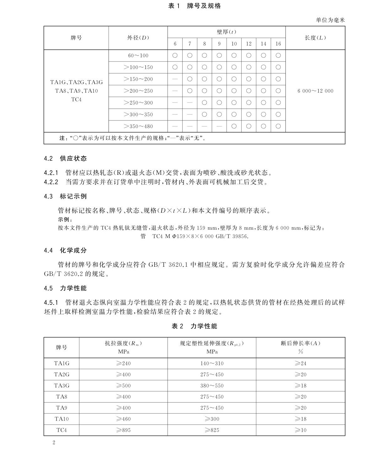工業(yè)用熱軋鈦合金管無縫管國家標(biāo)準(zhǔn)GB/T 39856-2021