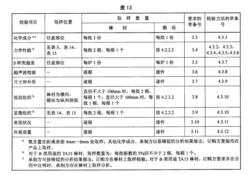 3.6.1 除B類用途的TA15鈦合金棒材外,棒材或鍛坯應按GB/T 5193的規(guī)定進行超聲波檢驗,其驗收級別應符表10的規(guī)定。